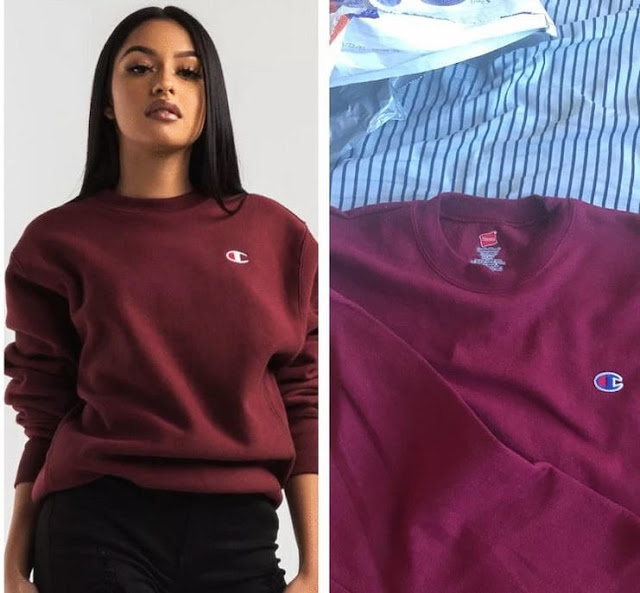 7. Whoever sold this “Champion” sweater thought they were being slick by gluing a Champion logo onto a Hanes crew neck.