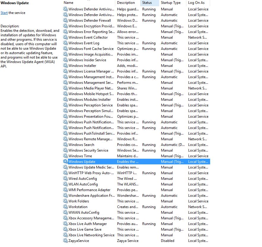 3) Find Windows Update and Double Click on it.
