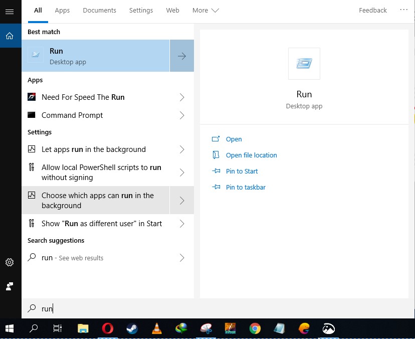 1) Go to start and search Run and hit enter or press WindowsKey+R.